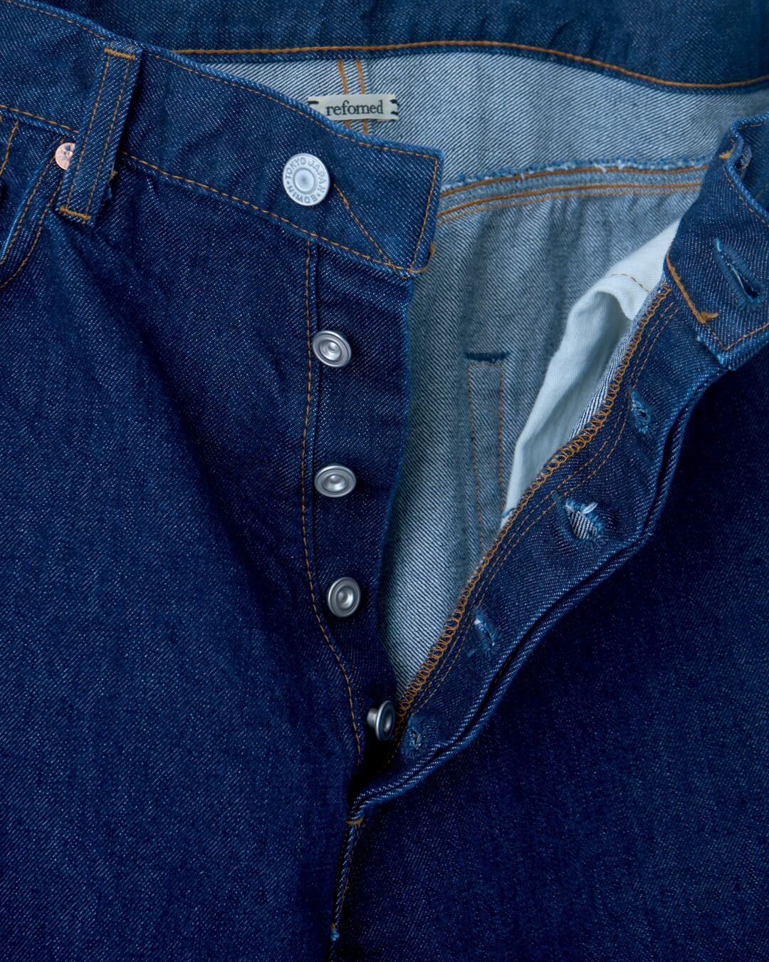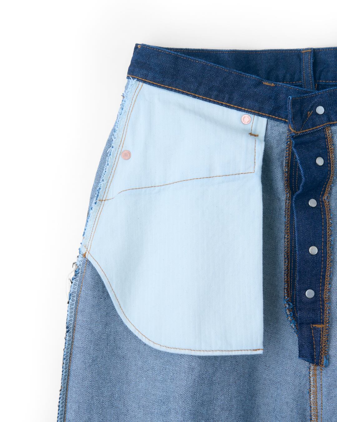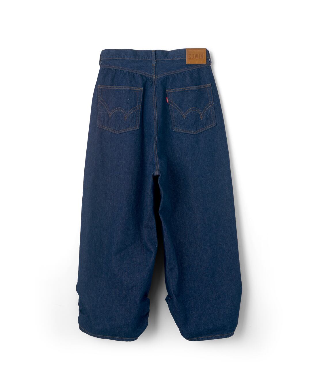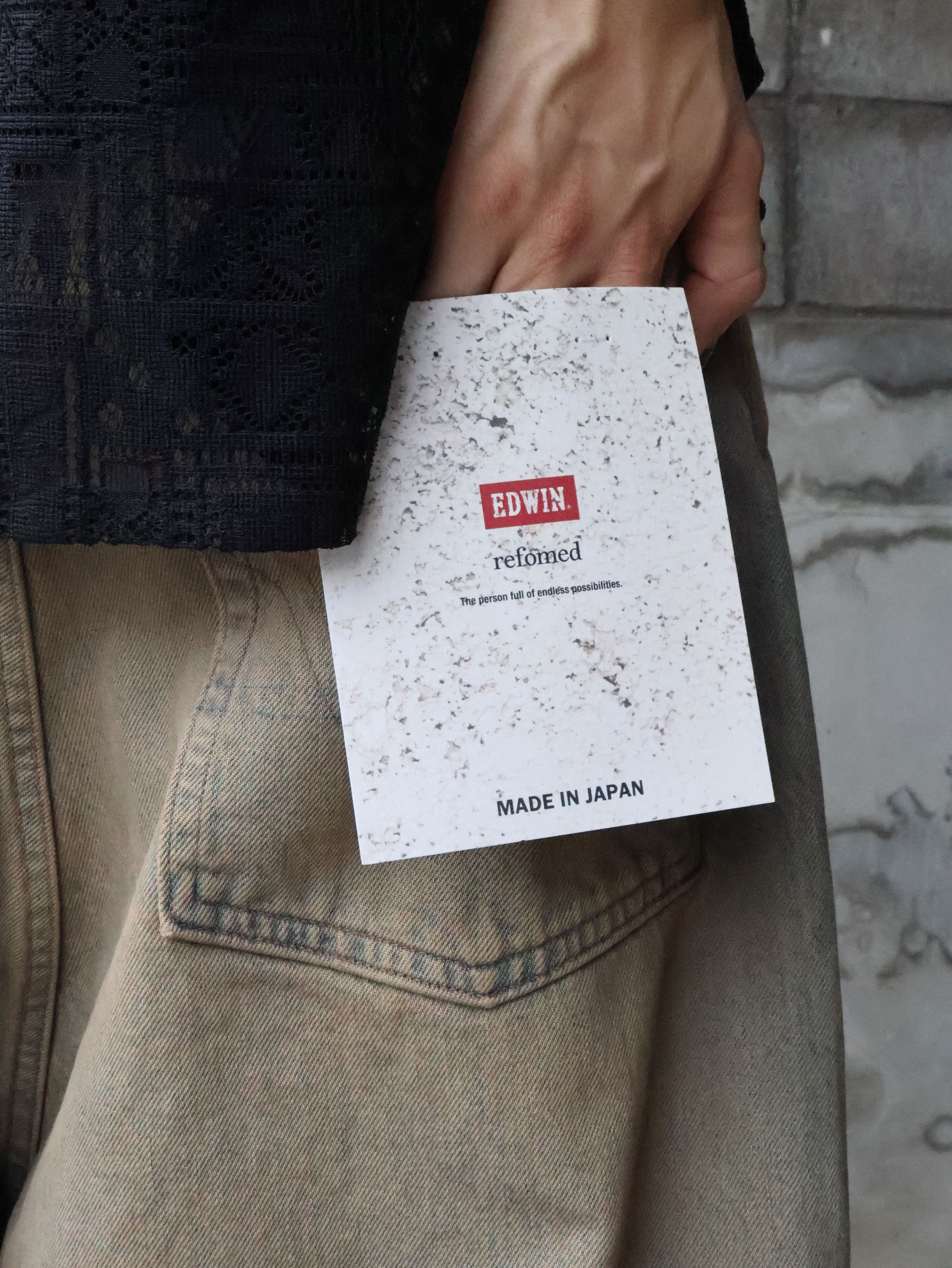 EDWINとのコラボレーションデニム。超超ワイドや5超など、職人たちの間でパンツの太さがキャラクター性を表していた背景から着想を得て、シルエットを調整。 EDWINのディテールを可能な限り踏襲しつつ、refomedのアイコン的なシルエットへと落とし込んだ一着。