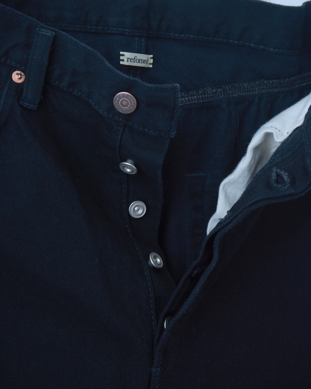 EDWINとのコラボレーションデニム。超超ワイドや5超など、職人たちの間でパンツの太さがキャラクター性を表していた背景から着想を得て、シルエットを調整。 EDWINのディテールを可能な限り踏襲しつつ、refomedのアイコン的なシルエットへと落とし込んだ一着。