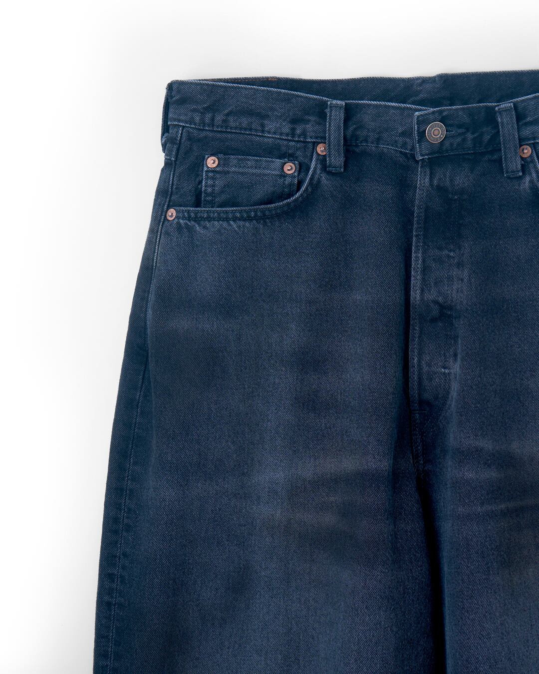 EDWINとのコラボレーションデニム。超超ワイドや5超など、職人たちの間でパンツの太さがキャラクター性を表していた背景から着想を得て、シルエットを調整。 EDWINのディテールを可能な限り踏襲しつつ、refomedのアイコン的なシルエットへと落とし込んだ一着。