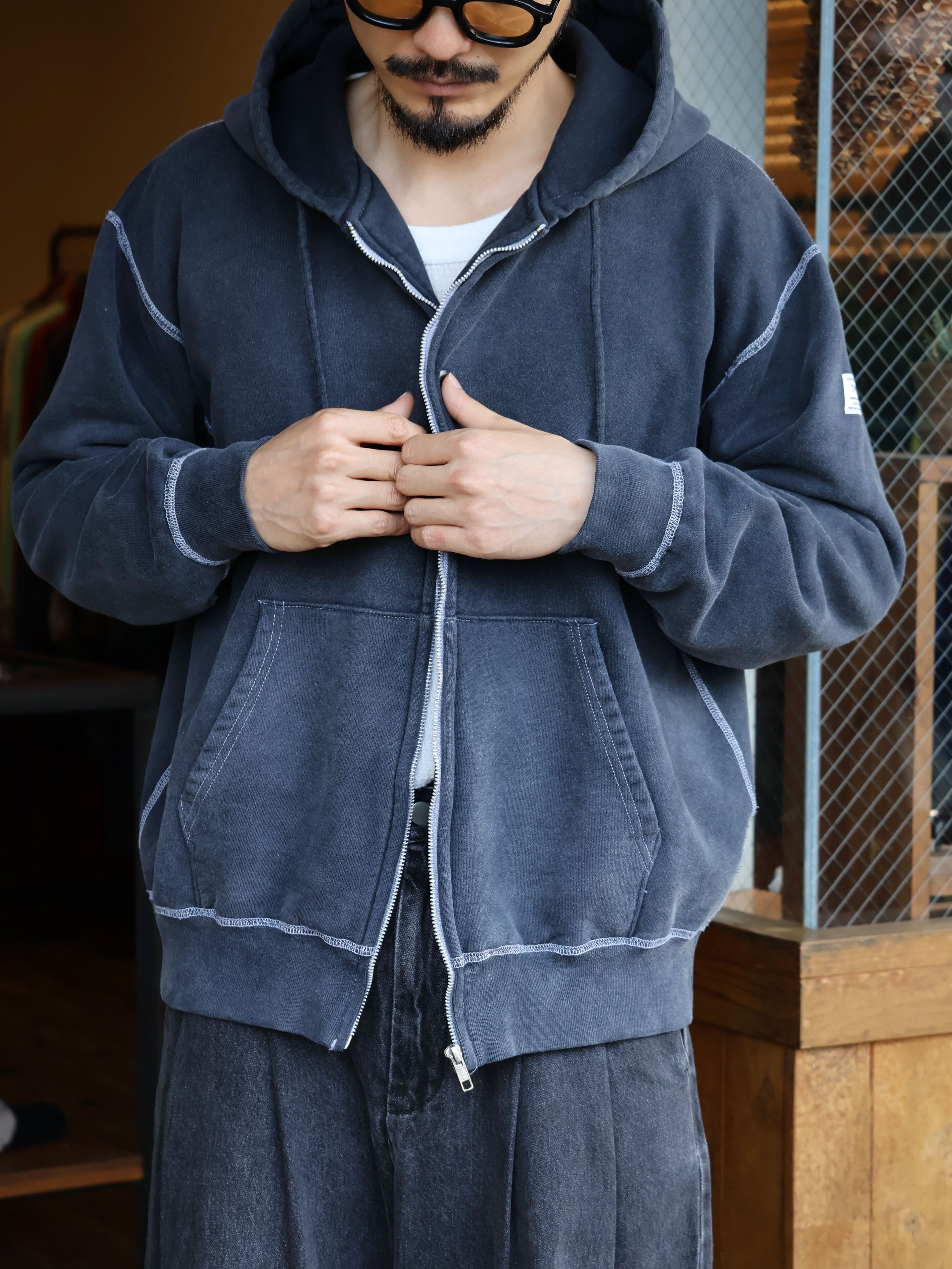 ゆったりとした身幅に短めの着丈のボックスシルエットの裏起毛ジップフーディー。
