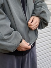 身頃裾、袖口部分に大振りなタックを配置し、本来のソレとは真逆のドレープ感のある柔らかな表情にパターンメイク。