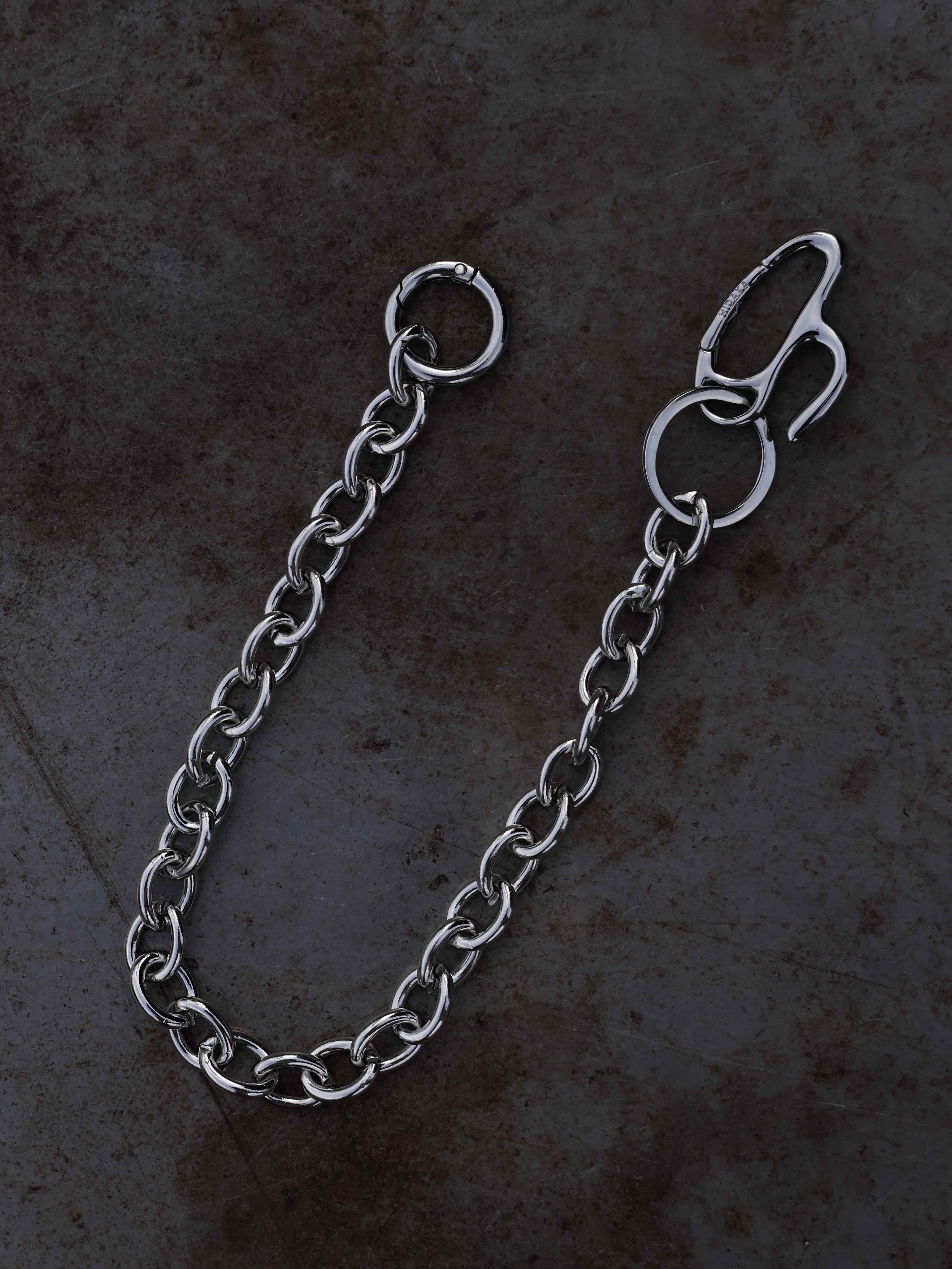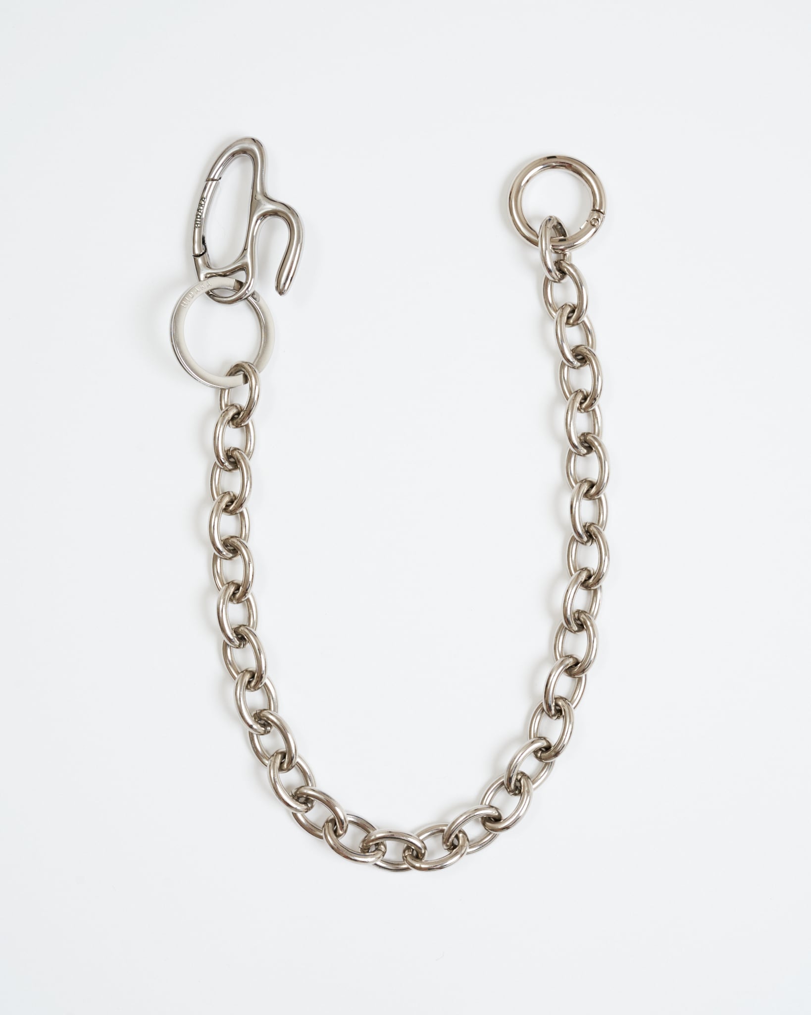 HIDAKA定番のオーバルパンツチェーン。2026SSよりHIDAKAオリジナルの"h"カラビナが採用され、よりオリジナリティの高いデザインへアップデートしました。ネックレスとしても着用可能です。